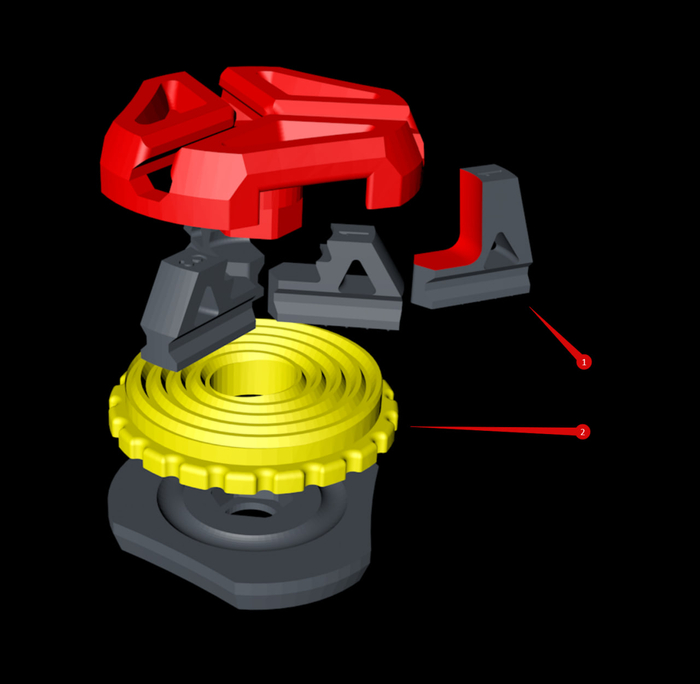 Выглядит добротно, размер даже подгонять не надо - миниатюрное. Качаем, немного модифицируем кулачки, печатаем в два цвета. PETG/ABS.
