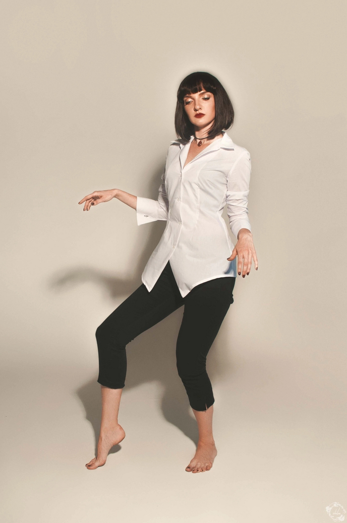 Когда Винсент только приходит к Мии домой, чтобы отвезти ее на ужин в Jack Rabbit Slim's, она встречает его с направленной на него камерой и берёт у него интервью.