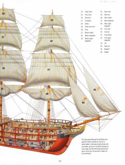 В кадре стволы двух гладкоствольных орудий Дальгрена, уникальная горизонтально расположенная сцепленная железная бортовая броня, бронированные ставни орудийных портов и члены экипажа корабля. Также видна заделанная пробоина от вражеского снаряда (рядом с ватерлинией, слева внизу по центру) и пушечное ядро, застрявшее правее, также у ватерлинии.