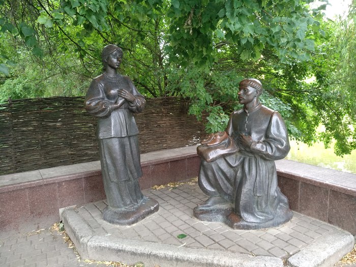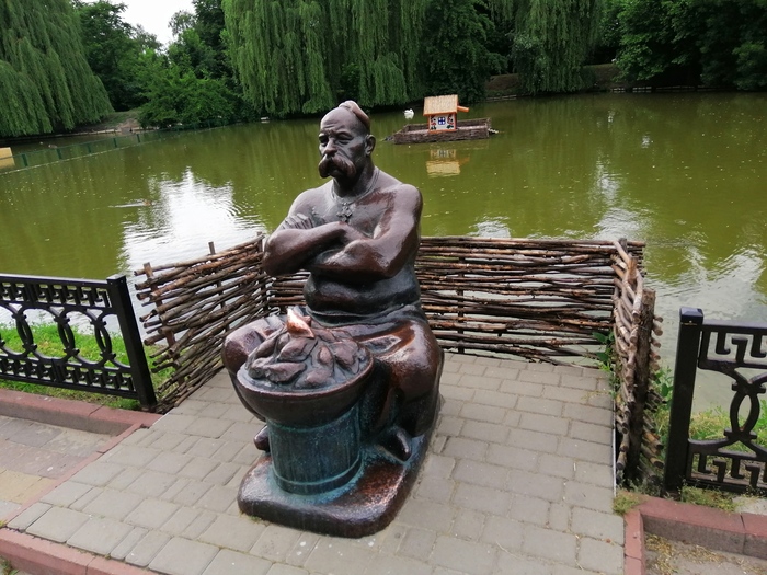 Пришли к аллее гоголевских героев. Встречает нас Пузатый Пацюк, козак-характерник, которому вареники сами в рот прыгают.