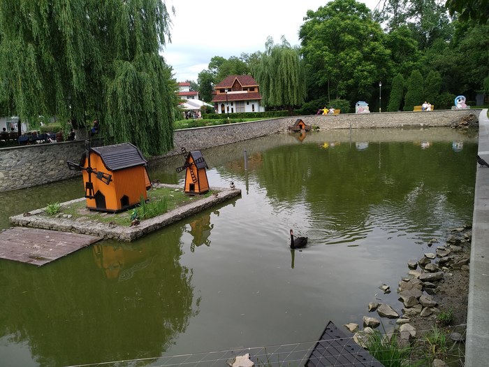 Это декоративное озерцо уже рядом с главным бюветом, населенное уточками, черепахами и лебедями