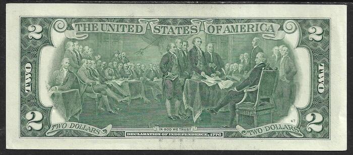 Большинство из людей, которые изображены на купюре 2 доллара как составители Декларации независимости, тоже были масонами.