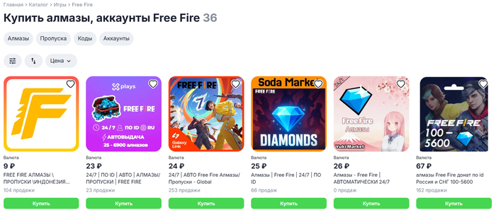 Перейдите на официальный ggsel и в поиске выберите категорию «Free Fire».
