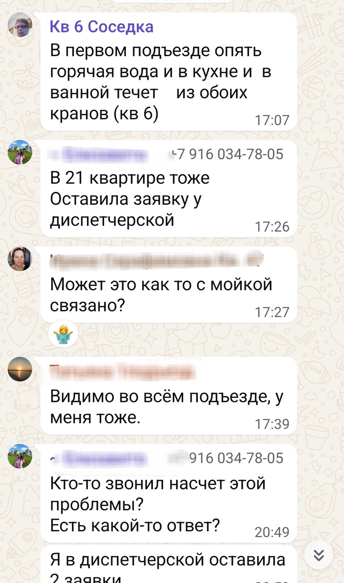 Можно ещё добавить, что в конце апреля неделю жили без отопления, замерзали в квартирах. Думали, это город отключил отопление. Нет, это шаловливые ручки работников мойки. А ещё через месяц жители подъезда над мойкой недоумевали, почему из обоих кранов у них кипяток шпарит. Причина - всё та же. После этого ещё несколько раз отключали воду.
