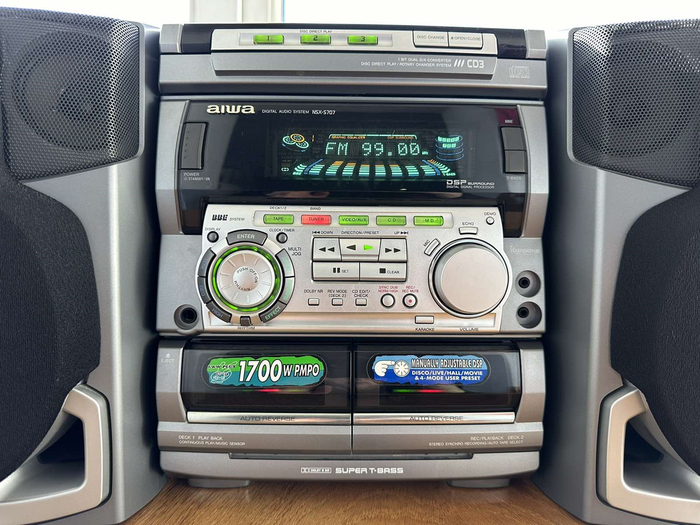 Некоторые модели, такие как Aiwa NSX-S707, использовали технологию би-ампинга — раздельное усиление сигналов для низких и высоких частот. Это улучшало детализацию звука, делая его более чистым и сбалансированным.