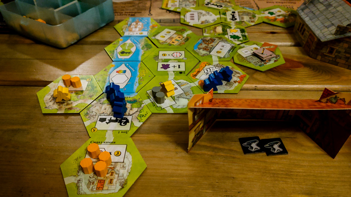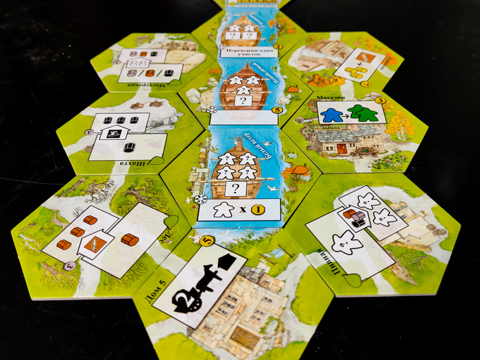 Как только игра была разобрана по зип-локам и органайзерам – я побежал на игротеку опробовать свою новинку. Поэтому партия была на шестерых. Другими составами я пока не пробовал играть. Чтобы ответить, почему настолка похожа на «Каркассон», немного о правилах.