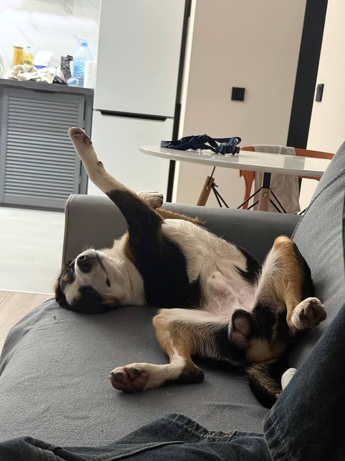 Разместили объявление в местных группах мол найдена... Неделя тишина, вторая неделя тишина... А дети друзей реально мучают собаку. И очередная пятница, мысль жены друга мол "отдам в приют мне ее жалко дети мучают". А эта морда весь вечер у меня на коленях и с глазами преданными... и я такой Да вот фиг вам никакого приюта я себе заберу.