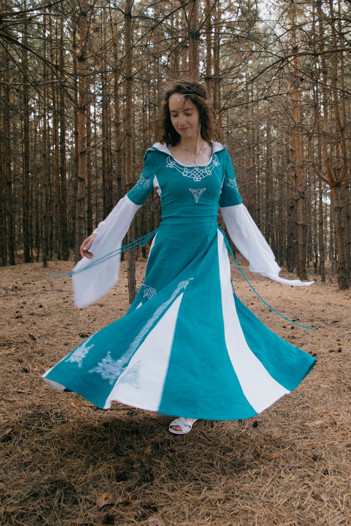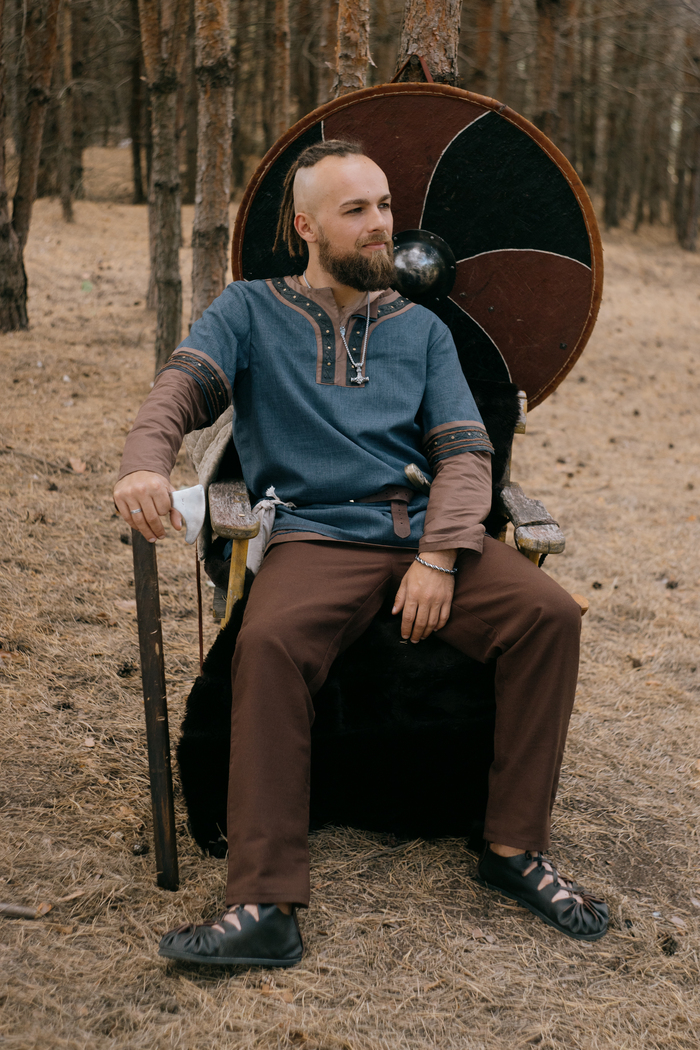 Чтобы окончательно ввести посетителей в когнитивный диссонанс, я облачился в костюм викинга — реплику Бьерна Железнобокого (да, того самого из сериала) Но спрятал его под пончо, ибо холодно =) Поэтому прикреплю образ ниже отдельным фото не с ярмарки. А жена надела длинное фэнтезийное платье в скандинавском стиле, от которого так и веяло эльфийской магией. На фоне бабушек с вязаными игрушками и мылом мы выглядели эпично. Люди подходили не только потрогать кожу, но и сфотографироваться с «персонажами».