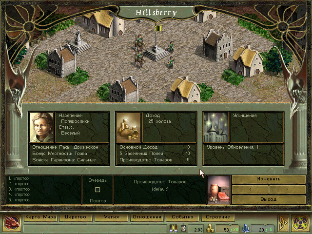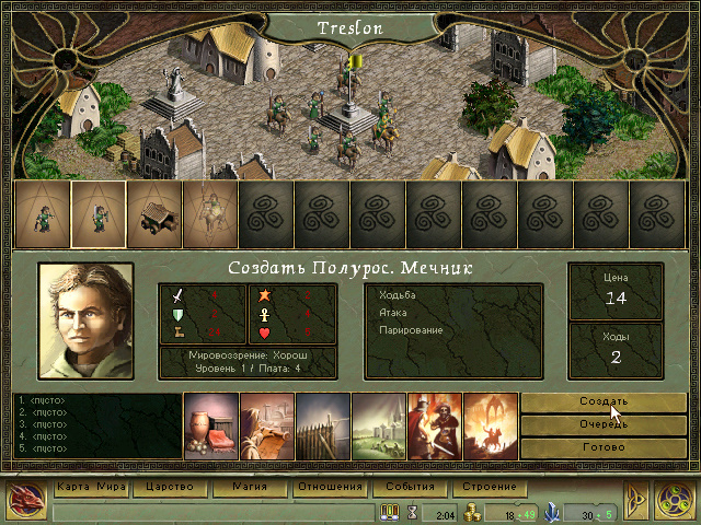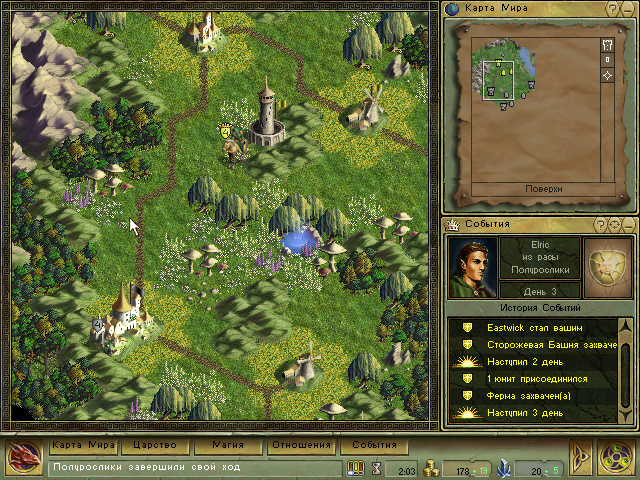 Дальше всё каки в Героях: появляемся на карте, где нужно сразу захватывать различные фермы и собирать войска за деньги