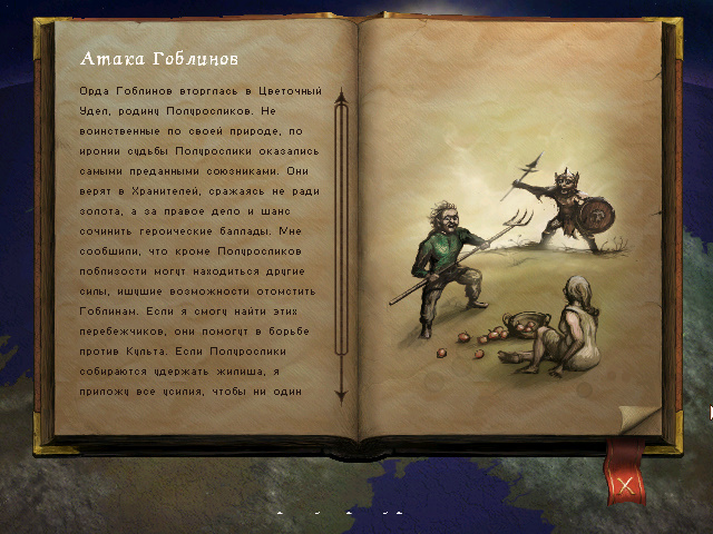 Ну по сюжету стоит сказать, что круто оформлено: книга со страницами, где рассказывается вся история, погружая игрока тем самым в фэнтезийную среду.