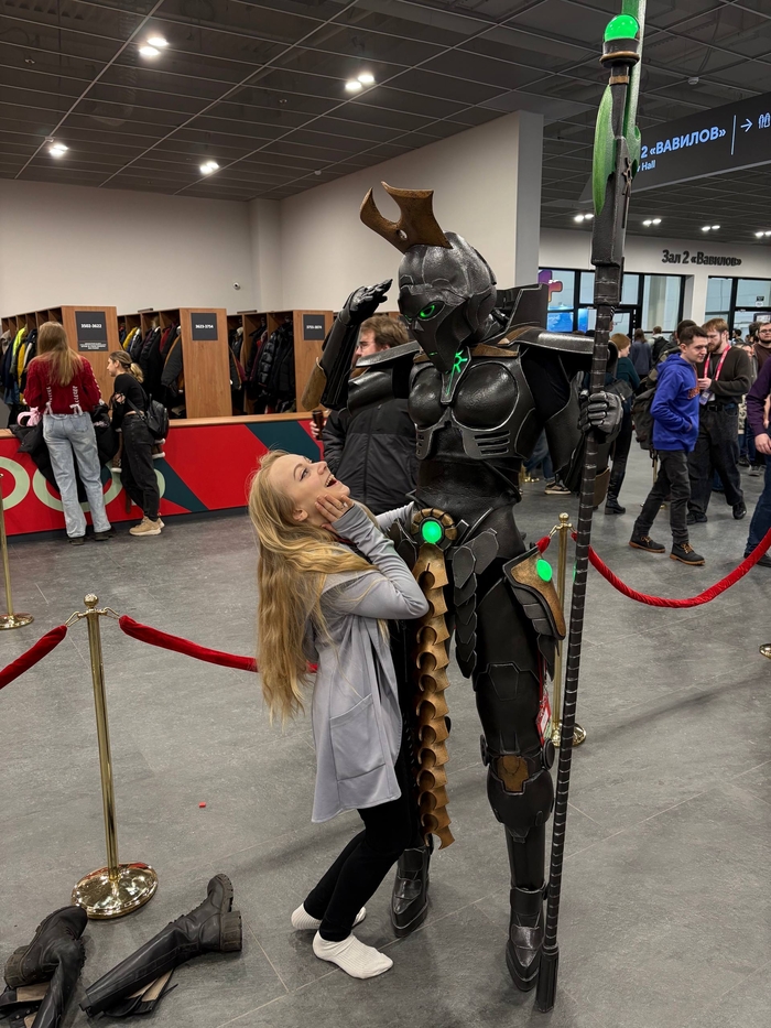 в целом мне понравилось, но три дня ходить в не самой удобной обуви было тяжело (узкий нос и каблуки 15 см), очень приятно удивлена огромному интересу к моему косплею и большому количеству желающих сфотографироваться 😳