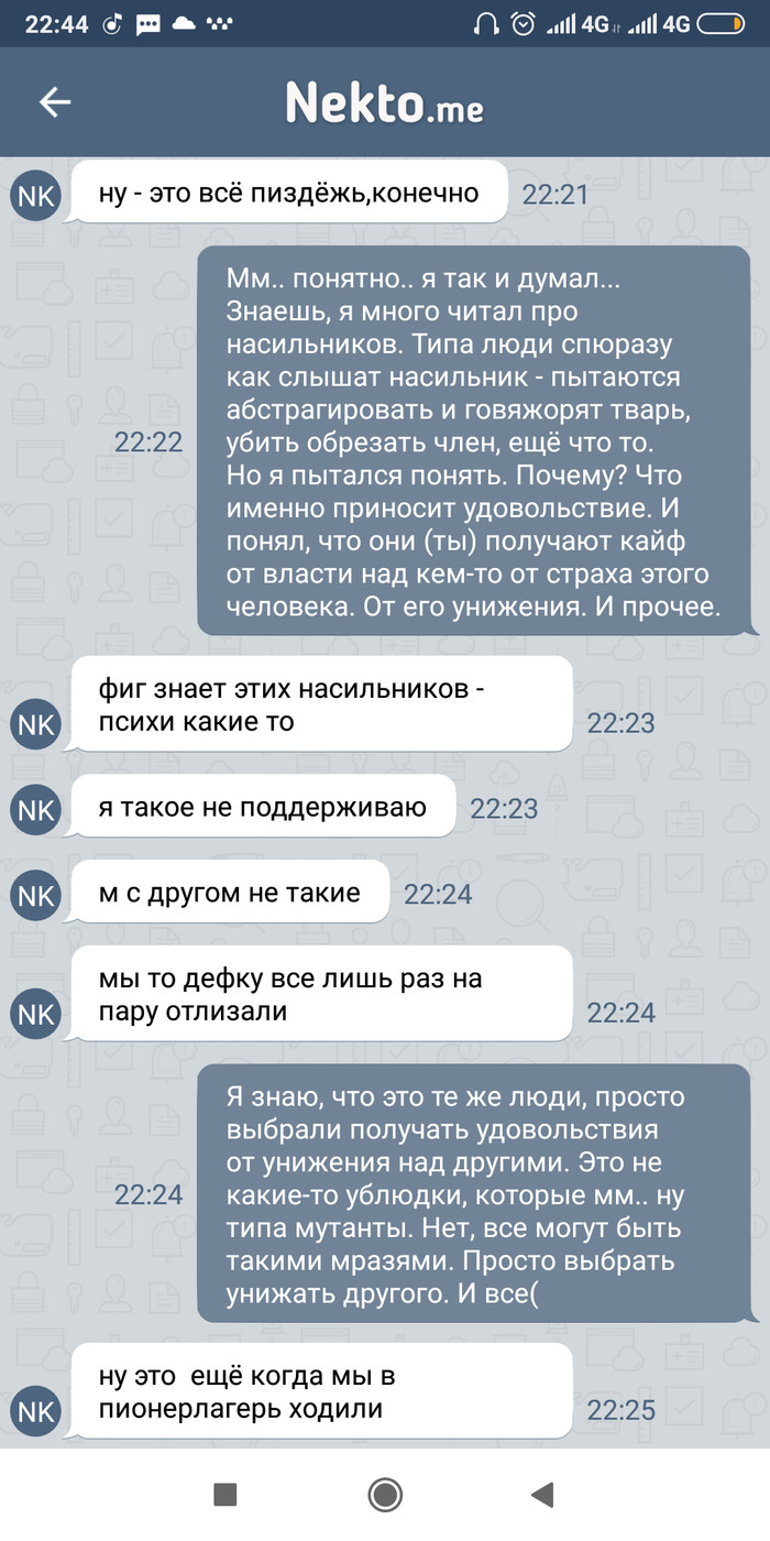 Уф. Ну и треш... Блин, когда представишь какие люди реальны и какие у них тараканы бывают... И что люди склонны признаваться чаще во всяком дерьме анонимно... Понимаете, что это же раельно было... Блин, так больно... Сори.. просто скину сюда.