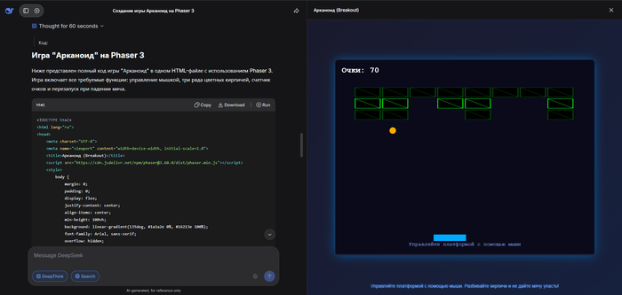 От слов к делу. Делаем игру в браузере за вечер: Phaser + DeepSeek. Бесплатно и без регистрации