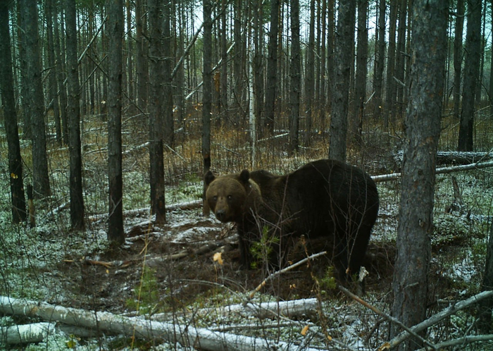 Бурый медведь – один из самых крупных зверей Нижегородского Заволжья: длина их тела достигает 2-2,5 метров, вес – 350 кг. В Керженском заповеднике на площади 469 кв. км обитает 25-28 медведей. Ценную информацию о численности и поведении этих хищников на особо охраняемой природной территории получают с помощью фотоловушек. Нередко медведи обследуют камеры, не нарушая процесс съёмки, и даже вносят коррективы в их расположение.