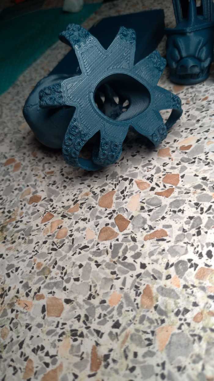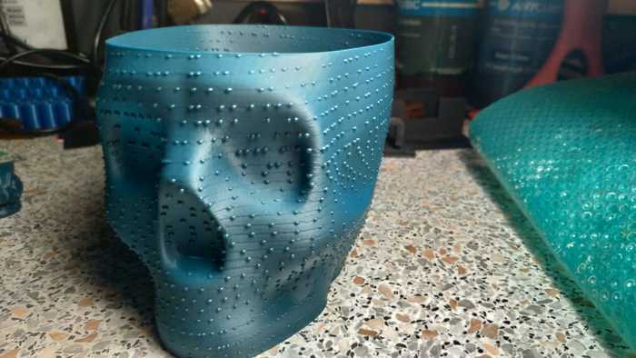 В общем каким то интересным макаром у меня то ли кура заглючила, то ли ещё что, но получился вот такой классный эффект. Печатался в режиме вазы и делал остановки, выдавливая пластик. Конкретно это печатал cr6se. Получилось круто). Если кто захочет, скину файлик g кода) и мне очень понравился цвет все же.