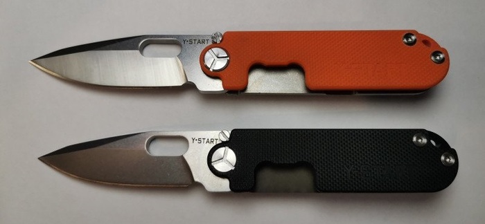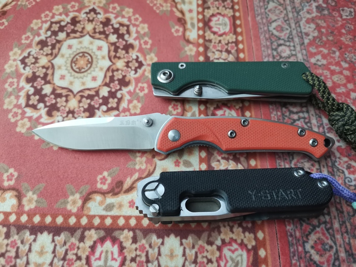 Но вот ковыряясь в сайте локального продавца ножей наткнулся на Y-Start LK 5009. Нет накладок, плашки из титана и G10, замок frame lock, отверстие вместо шпенька. И всё это великолепие всего за 1500р. Надо брать. И взяв на пробу один нож на следующий день вернулся в магазин - за вторым.