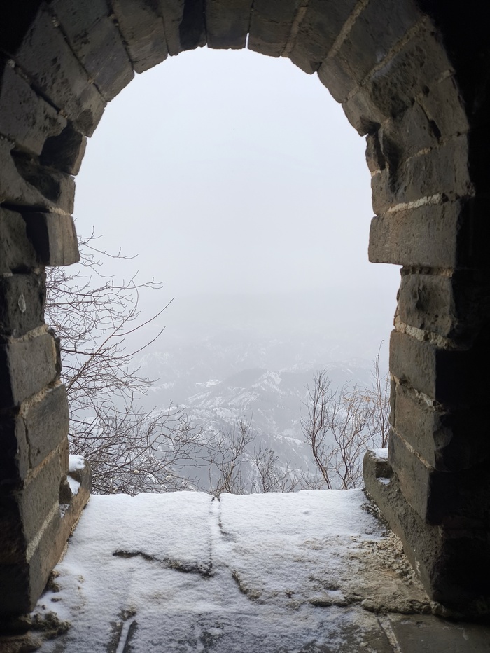 Конечно же, в первую очередь мы отправились на Великую китайскую стену. Оделись максимально тепло, взяли с собой термос с чаем. С первых минут нас впечатлили виды из кабинки канатной дороги. Никакие фотографии и видео не передадут красоту этих мест. Горы были усыпаны величественными кипарисами, немного заснеженными и ветвистыми. Мы радовались этим бесподобным видам как дети. Участок стены оказался почти безлюдным, что дало возможность сделать красивые фотографии.