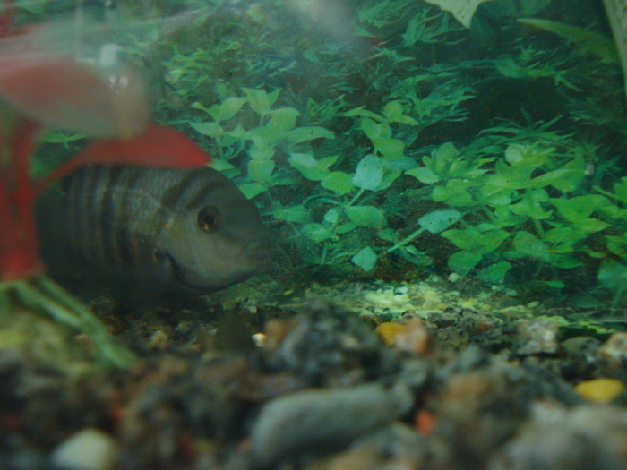 Тем временем в цихлиднике раскапывается до самого стекла субстрат (я ещё не понял, для чего, но очень скоро об этом узнал :-) ). Подходит время уборки и я, ничего не подозревая, сую руку с сифоном в воду.