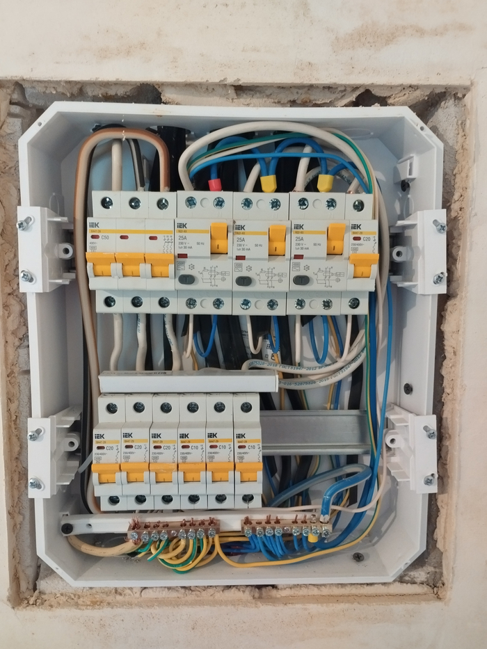 Что-то психанул и решил, пока делаю ремонт в доме, перебрать щит от застройщика (он на последнем фото).