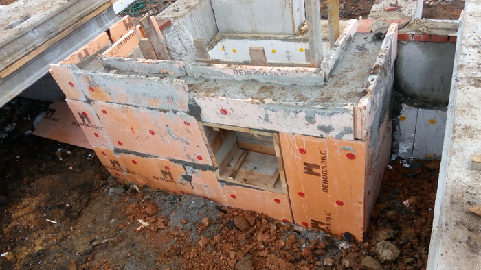 Здесь выход с подвала на улицу, как никак котельная. И отверстия в ростверке под дымоход и вентилляцию котельной. Экспромт.