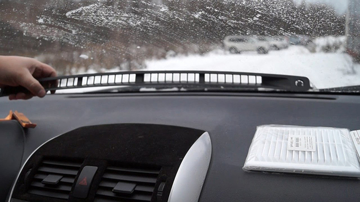 Засориться может не только фильтр, но и непосредственно сама система обдува, особенно если она используется нечасто. В довольно редких случаях пыль может даже закоксоваться, что приведет к практически полной невозможности работы этой функции. Кроме того, обратите внимание на так называемое жабо – пластиковую форму, куда укладываются «дворники». Часто там скапливаются листья и грязь, что засоряет воздуховоды. Если это так, жабо нужно почистить.