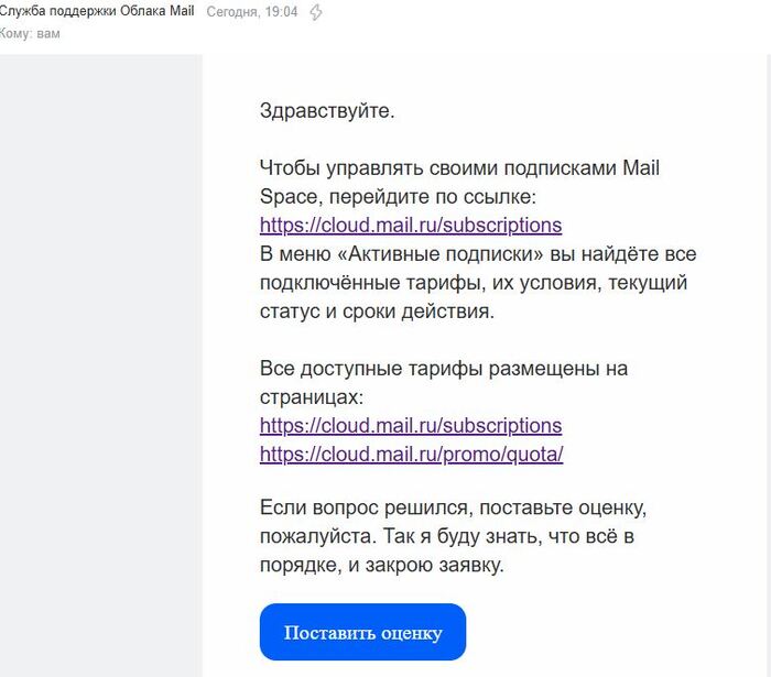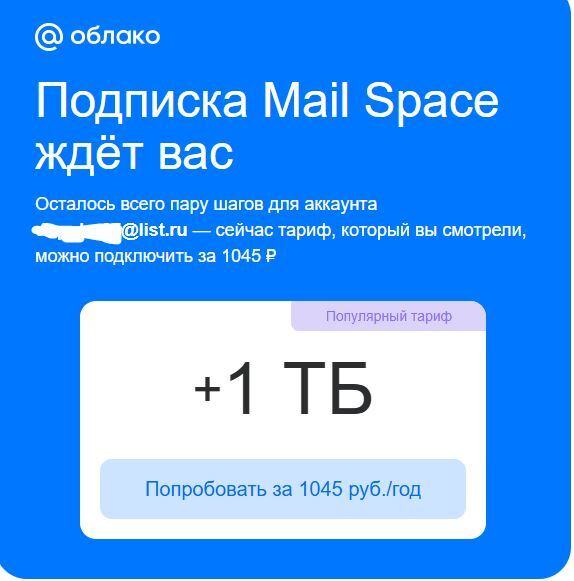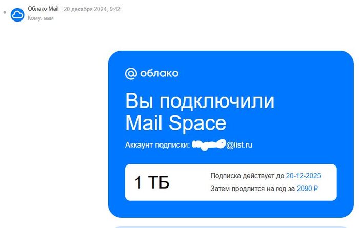 Подключал помню подписку в облаке мэил. Пришло письмо, типа оплати: