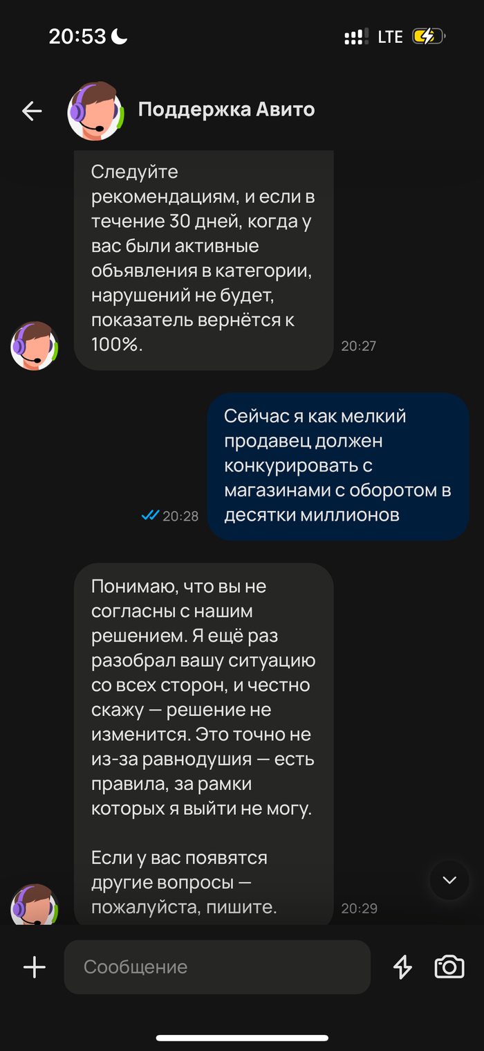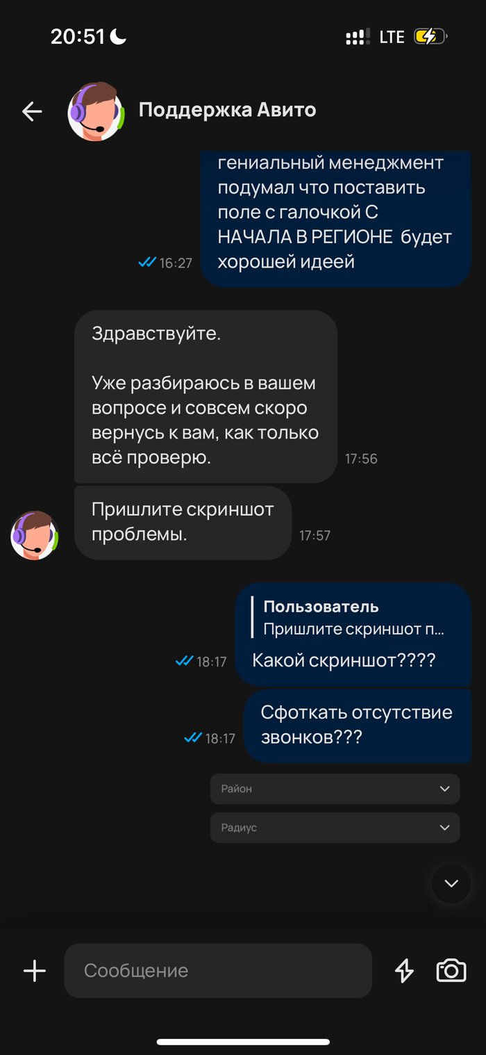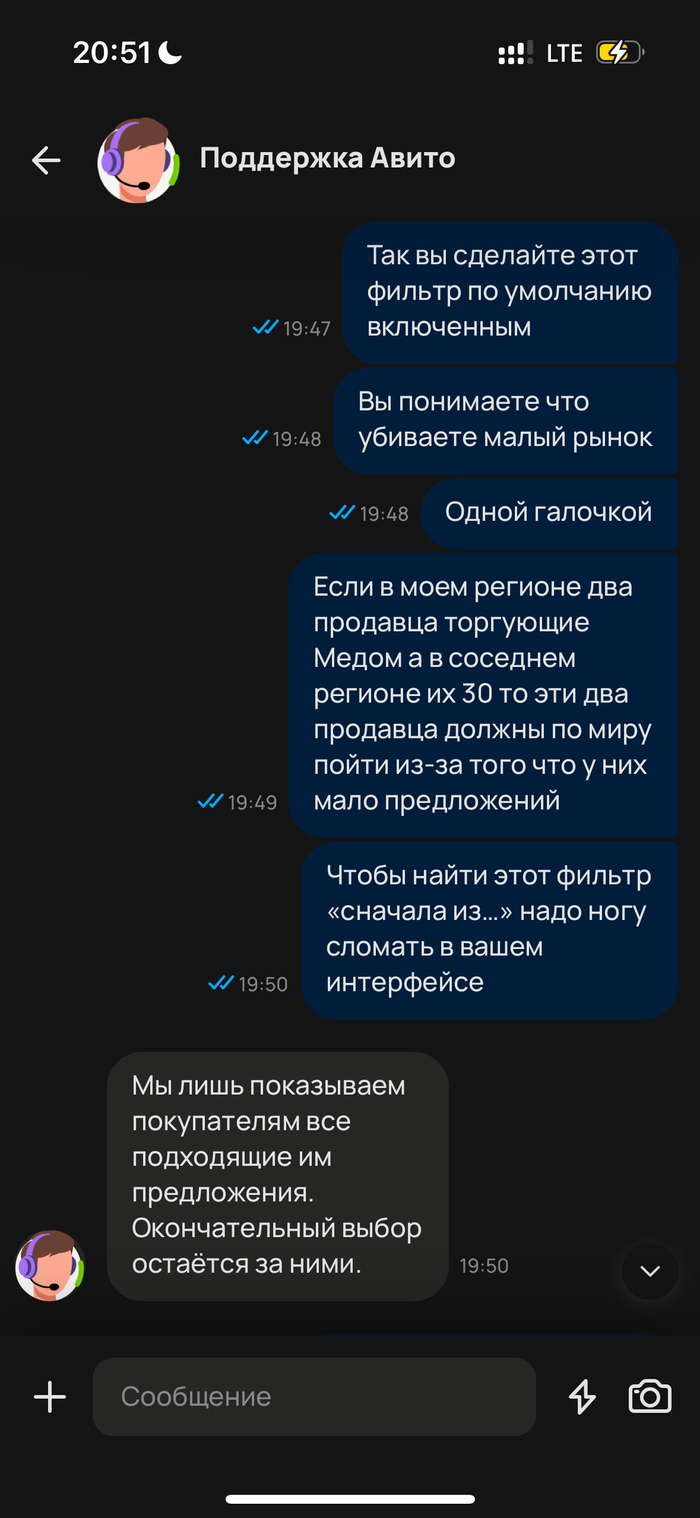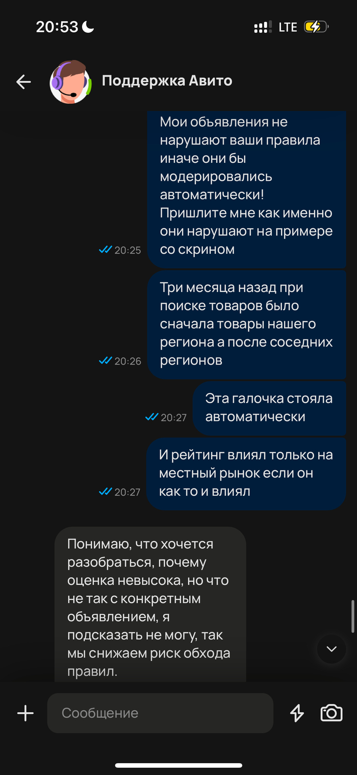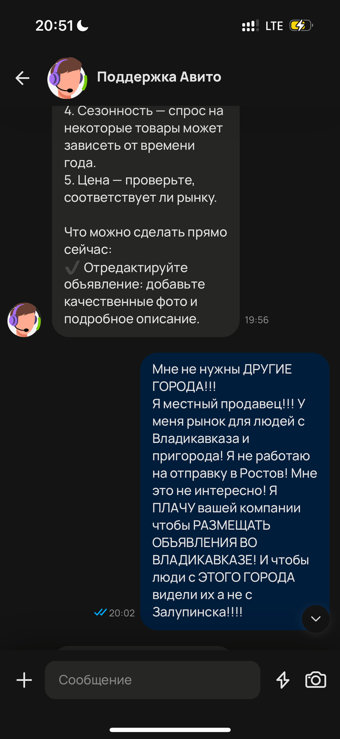 Размещаю объявления на этом плохопахнущем сайте уже 13лет. Руководствуясь фразой «нас совокупляют, а мы крепчаем» стиснув зубы все терпим. Было бесплатно потом 5.000 потом 12.000 сейчас 40.000 в месяц. А что поделать монополия она такая. Второй месяц продажи на нуле.. только «сарафан» и фраза а мне сказали что тут мне помогут.. Звонки с авито утихли, хотя объявления проплачены и висят на сайте. Решил посмотреть в глаза безысходности и написать в поддержку
