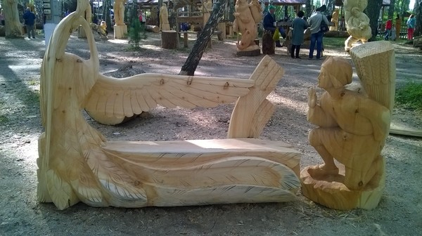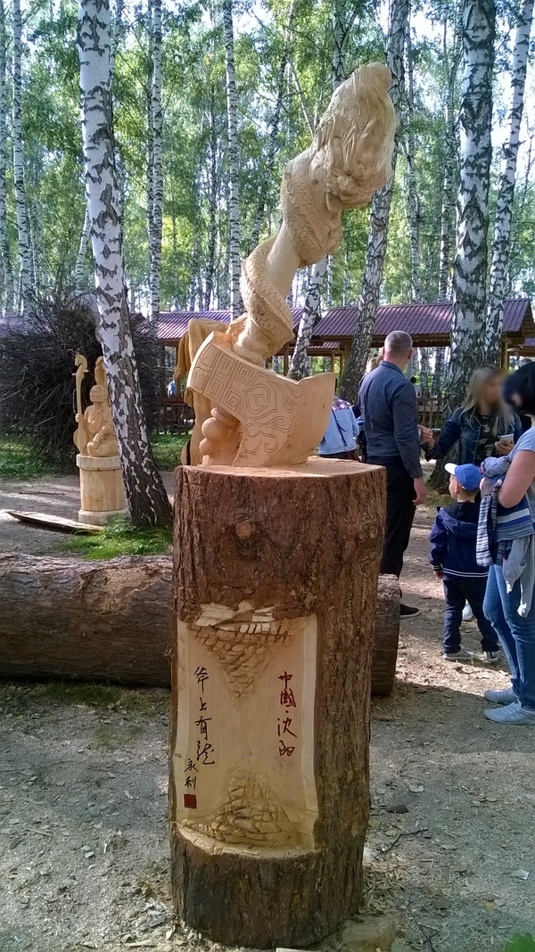 На самом фестивале я не был (там в выходные невозможно протолкнуться, столько народа), но поехал в Околицу на следующий день после закрытия. Изумило красота и фантазия новых деревянных скульптур и архитектурных изделий из дерева. Ходил и балдел от искусства плотников. Вот решил и Вас познакомить с этими прелестными работами. Тут только часть работ.