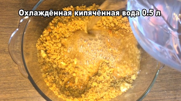 После добавляем 0.5 литра охлаждённой кипячённой воды и 1 ст. ложку белого винного уксуса