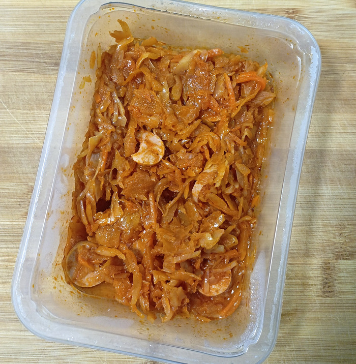 К тушёной капусте я питаю трепетные чувства ещё со времён СССР, где я лакомился ею в столовках и забегаловках. И знаете что? Вкус и запах капусты из «Пятёрочки» мне напомнил именно те, советские столовые. К самой капусте претензий никаких — она хорошо сбалансирована по соли и сахару, нормально нарезана и не разварена в тряпку.