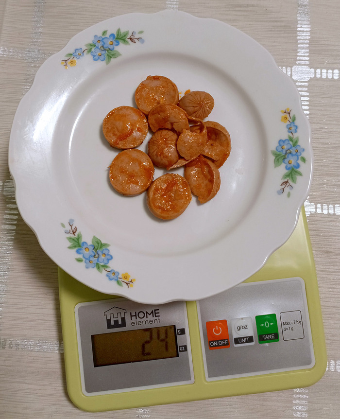 Но вот зачем они накрошили туда дешёвых сосисок, лично мне совершенно непонятно. Для сытности? Ребята, я честно и тщательно выковырял все сосиски и взвесил их, получив… всего 24 грамма. К тому же сосиски эти производятся из смеси целлюлозы и сои куриного мяса механической обвалки, и не добавляют блюду ни вкуса, ни привлекательности.