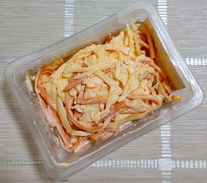 Резюме: симпатичный овощной салат для тех, кто следит за калориями (в упаковке 125 Ккал). Наесться им, понятно, не выйдет, это чисто похлопать зубами и пополнить запас витаминов. Цена 119,99 руб.