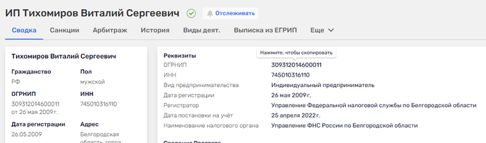https://tikhomirov.agroserver.ru/ нашел номер собственника он указан прям на сайте и написал ему в тг, связан ли он как то с данной компанией, на что не получил ответ, но улетел сразу в черный список, странновато, думаю ну может испугался, решил позвонить, позвонил, получил ответ что не связан и не знает про что я.