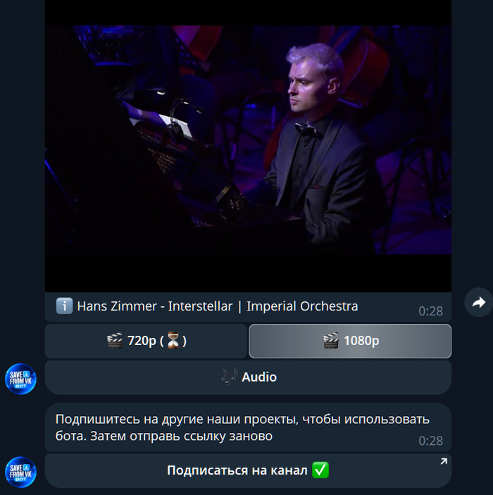 Ответ на пост «Telegram-бот для скачивания видео из VK и YouTube»1