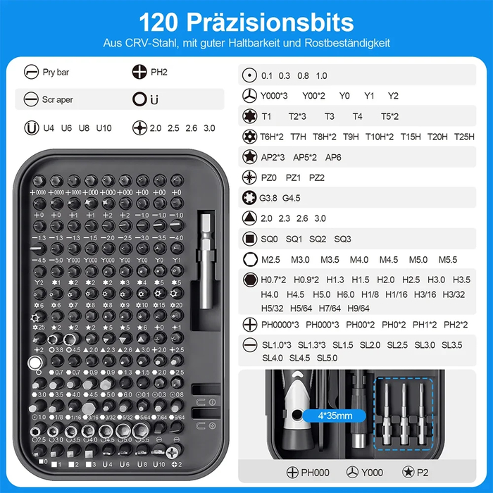 Комплектация: Поставляется с тканевым чехлом, металлической клипсой для крепления и набором бит, расширяющий возможности инструмента.