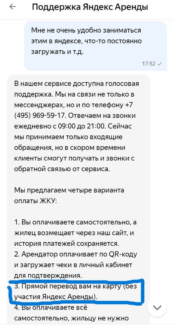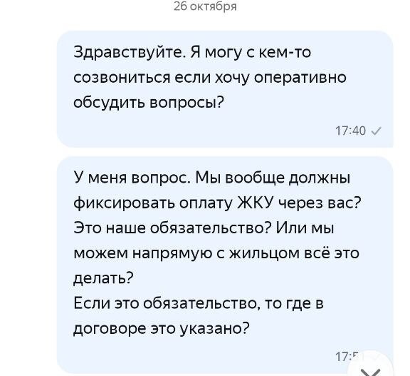 Мы написали в Яндекс Аренду и спросили, является ли обязательной оплата ЖКУ именно через их сервис, уточнив, что ранее это делали напрямую. Ну может, мы дураки и чего-то не понимаем.
