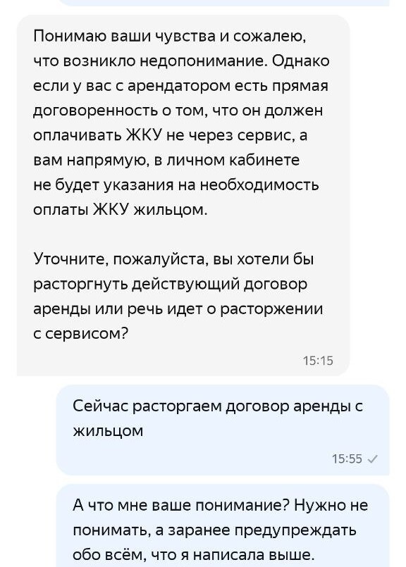 P.S. Представители Яндекс Аренды, можете ничего мне не писать. Мне от вас ничего не нужно, я уже отгорела от вашего подхода и уровня вовлечённости, мне диалог с вами вообще не интересен, а всё необходимое для фикса такого рода проблем вы найдёте в нашем диалоге в вашем сервисе. Вместо тысячи слов хотя бы поправьте собственный дурацкий баг -- это не фича и научите поддержку предупреждать о нюансах заранее, а не выражать "сожаления" постфактум.