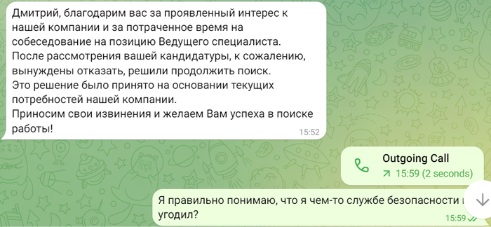 Я без тени сомнения (всё-таки крупная компания, «бигтех», как говорят, внушает доверие) взяла трубку. Дальнейшая информация меня не порадовала. Мне сообщили: «У нас не очень приятные новости. Тут руководство решило, что в другую команду потребуется другой специалист, а эта вакансия больше недействительна». Передать моего удивления и разочарования не хватит слов.
