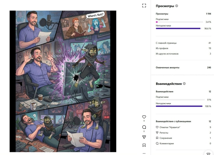 НО, внезапно, алгоритмы соцсети бустанули мой пост с комиксом))