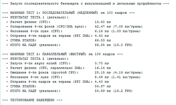 Выжать максимум из железа: Стабильные 19-20 FPS на 6 экранах — это мой личный потолок для этой версии железа. Больше — только с новой архитектурой или другим контроллером.