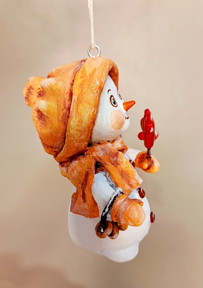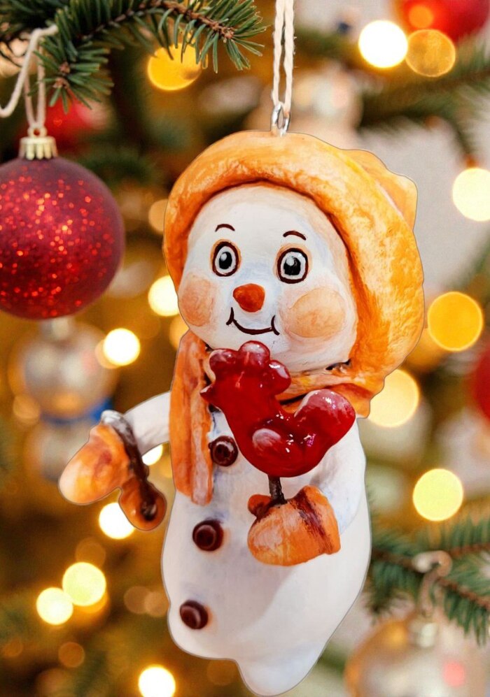 Этот малыш-снеговичок пришёл не просто украшать вашу ёлку, а дарить ей самое тёплое и трогательное настроение. Он будет застенчиво выглядывать из-за хвойных веток, напоминая о самом главном: о детском восторге, о смехе во время зимних игр и о вере в сказку.