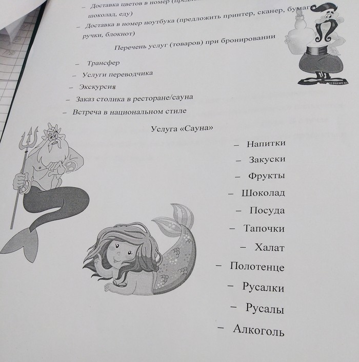 Чтобы развивать воображение студентов, да и по программе практическую работу выполнить, предложила студентам задание по теме "Cross-sell": Разработать перечень товаров и услуг, которые можно было предложить в сауне гостиницы".