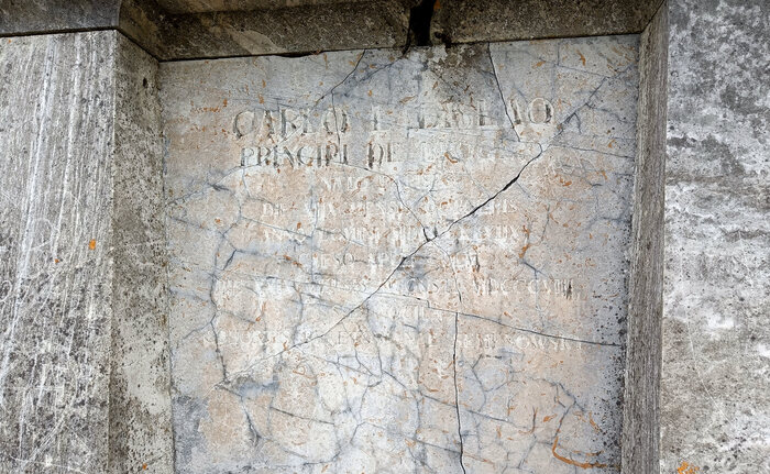 Желающие могут поразбирать на гранях обелиска изрядно стёршийся текст. На мраморных плитах со всех четырёх сторон были выгравированы надписи на латыни с посвящениями императору Александру I, двум братьям Брольи и самому факту установки обелиска. Одна из плит в память об Огюсте-Сезаре не сохранилась. Ладно, беру свои придирки обратно: здесь и правда на латинский манер фамилию братьев написали как «Broglio», а на латыни же как пишется, так и читается. Вот и получился Обелиск братьев Блоглио, загадка разрешилась.