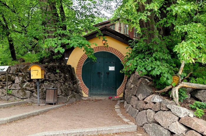 Шучу, конечно. Это всего лишь погреб-ледник, неизменный атрибут серьёзных имений, где нужно было хранить много еды для барского стола. Сейчас в нём сувенирная лавка, которая почему-то закрыта – то ли сегодня, то ли временно на какой-то срок. Но наличие рядом с входом почтового ящика и общий стиль так и вызывают желание пошутить про хоббитцев.