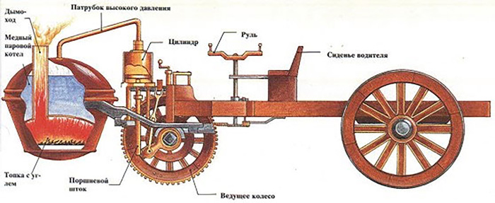 Конструкция паровой телеги была гениальной для своего времени и одновременно архаичной с современной точки зрения.