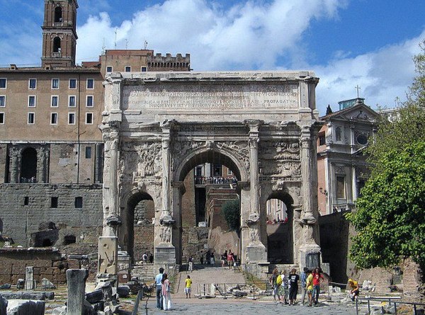 В 197 г. римский император Септимий Север вторгся в Парфянское царство: его армия спустилась на судах по Евфрату и захватила Вавилон, Селевкию и Ктесифон, парфянскую столицу. Правивший там Вологез III позорно бежал из города, забыв прихватить казну. Взяв город, Септимий Север провозгласил себя Parthicus Maximus и приказал продолжать вторжение. Однако, продолжение военной кампании уже не было столь блестящим. Север поднялся по течению Тигра и атаковал Хатру, правителем которой был вассал парфянского царя. Римляне взяли город в осаду, однако жители отказывались сдаться. Укрывшись за массивными стенами они держали оборону; им также удалось поджечь осадные машины римлян с помощью горящей смолы, в которую они обмакивали наконечники стрел. Мастерство парфянских лучников, а также вылазки кавалерии нанесли римской армии существенный ущерб. В конце концов император повелел снять осаду и возвращаться в Рим, где он, тем не менее, заявил всем, что победил Парфию и выстроил в честь этого свою знаменитую триумфальную арку.