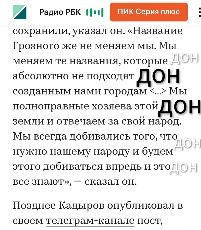 Кадыров общается с Шамановым...но чего-то не хватает в публикации РБК!