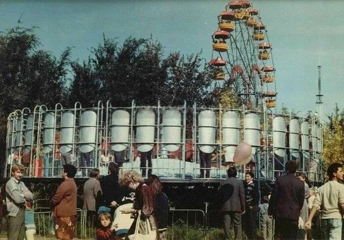 3. «Сюрприз» Экстремальный аттракцион, который часто становился источником адреналина. В отличие от других каруселей, на нём не было ремней безопасности и сидений. Посетители становились на специальные площадки и держались за поручни, а центробежная сила удерживала их на месте. Аттракцион был популярен среди смелых взрослых и подростков.  Многие люди, выросшие в 1990-е, до сих пор вспоминают аттракционы того времени с теплотой.