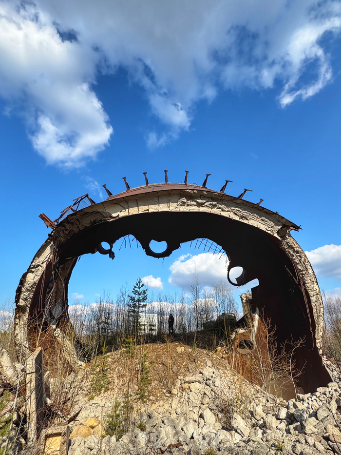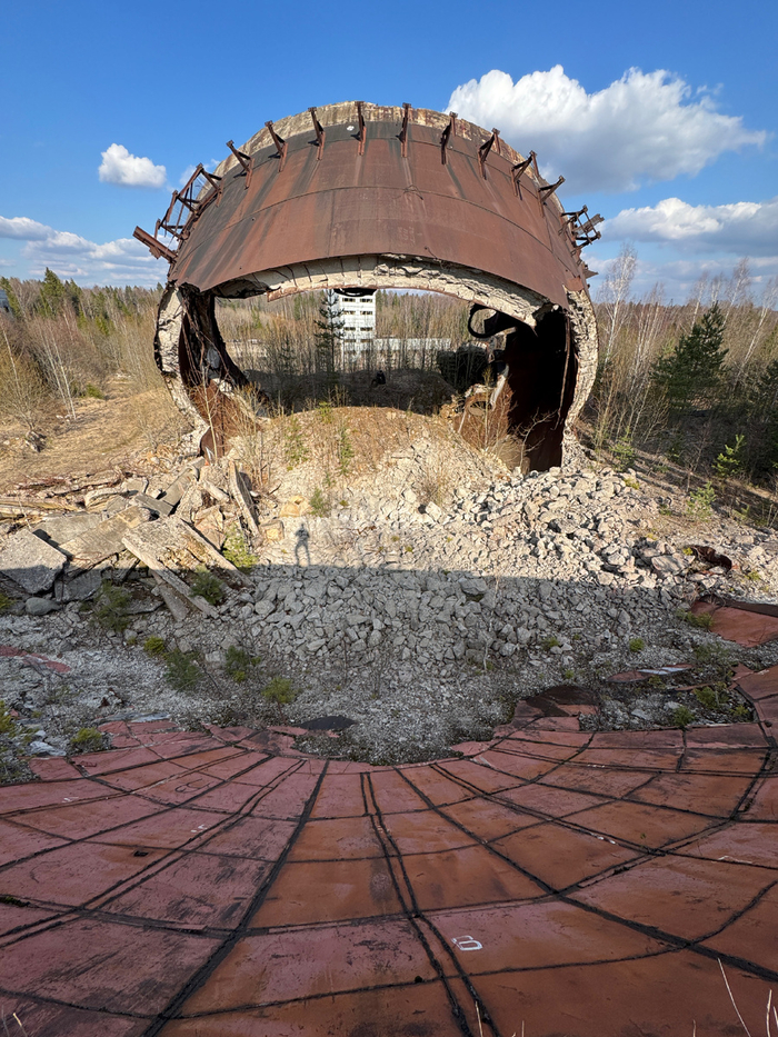 Небольшой городок Пересвет (до 2000 года - Новостройка) в Московской области, население которого сократилось с советских времен практически в полтора раза, достаточно молодой - основан он был в 1948 году. Градообразующее предприятие НИИхиммаш занималось испытаниями и наземной отработкой ракетных двигателей, космических аппаратов, спутников, орбитальных станций. Многие жители города принимали участие в создании и запуске первого искусственного спутника Земли и работали над первым пилотируемым космическим кораблем «Восток», на котором Юрий Гагарин совершил свой полет в космос. В 1988 году, когда со стартовой площадки Байконура в небо взмыл "Буран" и сумел в беспилотном режиме 2 раза обогнуть Землю и вернуться обратно на космодром, у людей, причастных к этому великому достижению, появились надежды на светлое, а главное беззаботное будущее. В лесах близ Пересвета начали строить новую площадку, предназначенную для испытания твердотопливных ракетных двигателей. Работы шли интенсивно, и на горизонте уже маячило открытие испытательного стенда, но произошло непоправимое событие - Советского Союза не стало. В 90-е годы строительство было заморожено. Оно стало своеобразным памятником, посвященным последним годам существования СССР. Странным и страшным. Впрочем, это нужно видеть своими глазами.