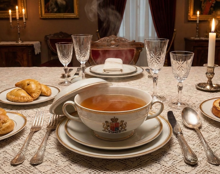 Для аристократии того времени прозрачность супа была символом чистоты помыслов и высокого статуса. Если сквозь слой бульона в тарелке нельзя было рассмотреть герб и прочитать девиз на дне фамильного фарфора, повара могли и уволить.